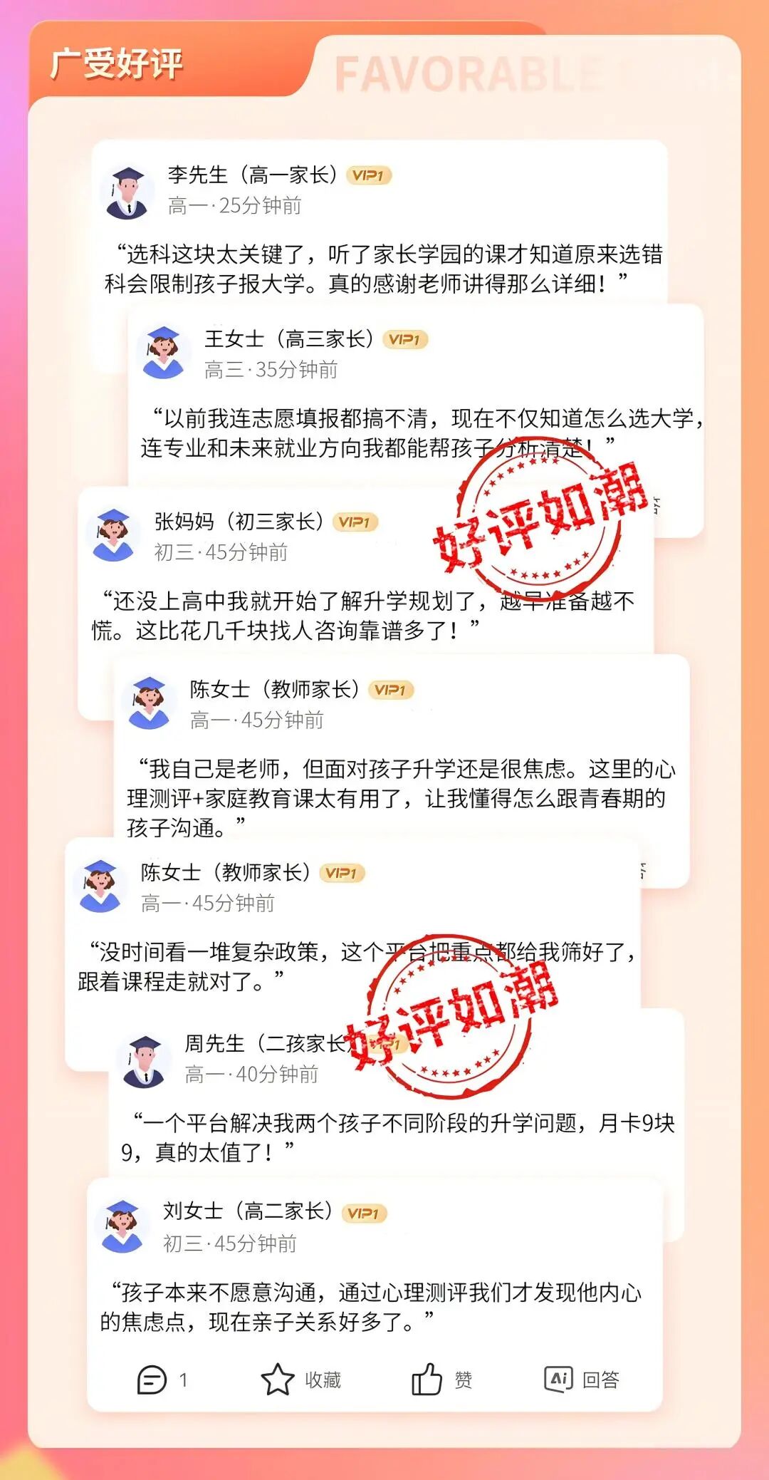 对于家长们的困扰,优志愿重磅推出的家长学园——升学护航宝典正式上线。这可不是一门简单的课,而是一个“家庭军师团”,专门帮家长们解决亲子沟通和升学问题。