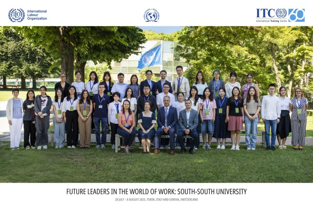 本次课程在国际劳工组织国际训练中心总部意大利都灵校区进行。我校8名同学与来自全球十多个国家和地区的30余名学员共同研习,课程聚焦于南南合作和三角合作框架下未来劳动世界趋势,核心议题包括利用南南合作和三角合作推动以人为本的发展、保障新型工作形态中的体面劳动机会以及在平台经济中创造环境、社会和治理(ESG)价值。