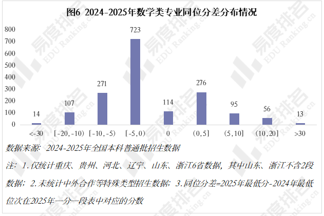 六、录取分数下降的远多于上升的,数学类专业报考难度下降