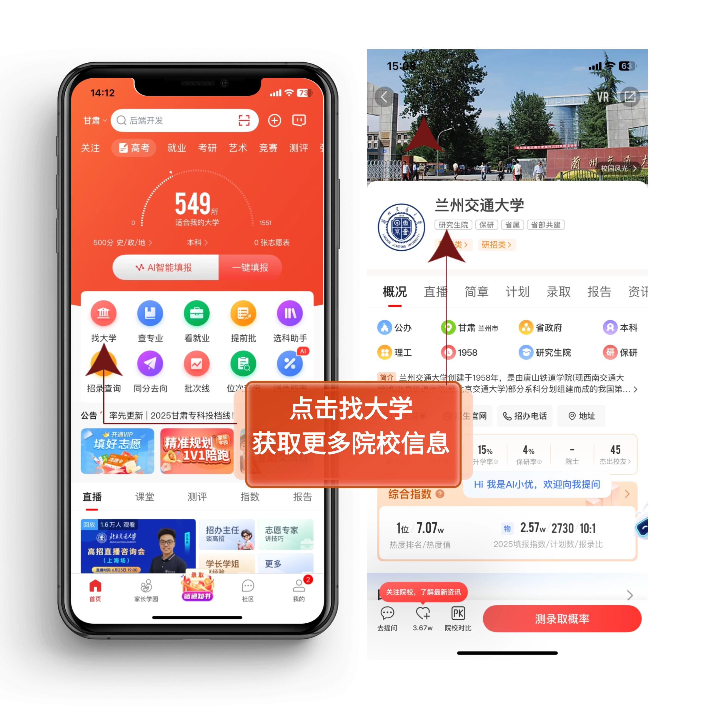 想要了解更多关于大学的讯息,登录优志愿APP,使用【找大学】功能,一键获取学校招生简章、招生计划、就业报告等更多资讯。