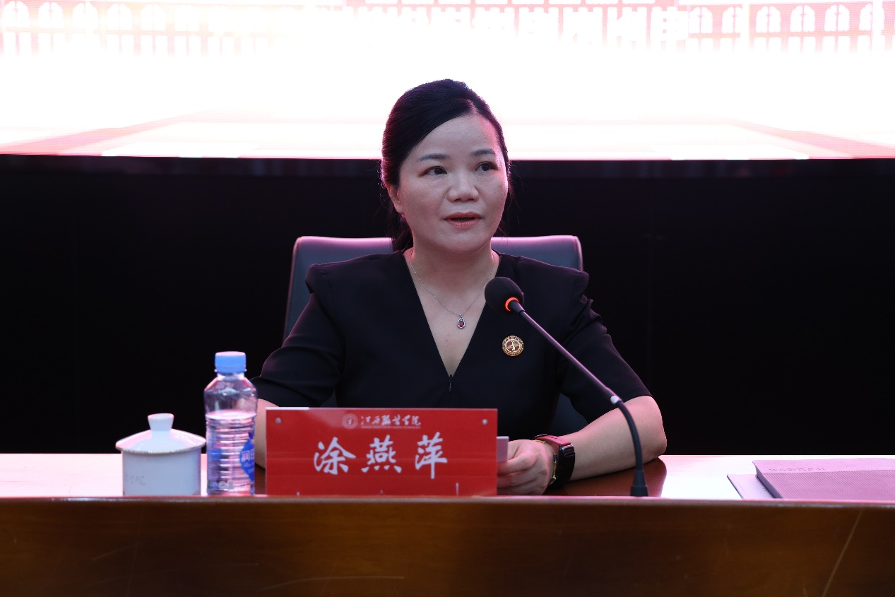 涂燕萍代表学校理事会对全体教职工的辛勤付出表示感谢,对2025年上半年学校在本科教育教学审核评估、平安校园建设、年度检查等重点工作中取得的显著成绩给予了充分肯定。