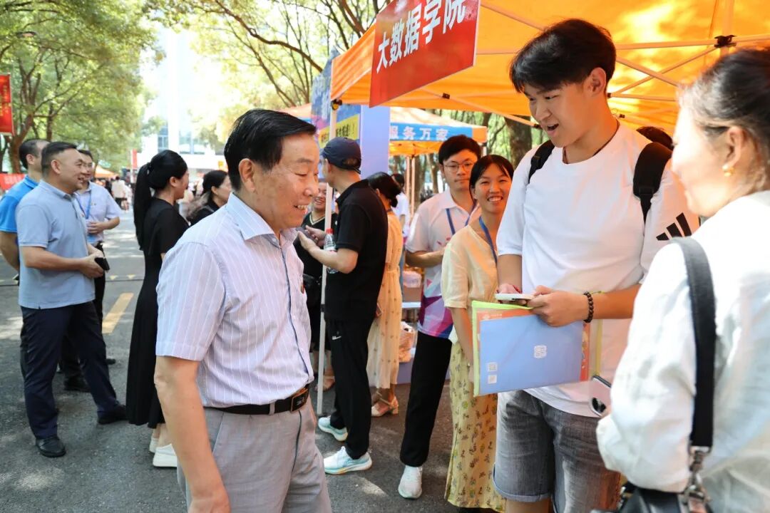 校领导一行先后来到学校大门、锦绣路迎新点、思贤楼现场缴费报到处、主教学楼家长休息室,慰问参加迎新工作的师生员工和志愿者。询问了解新生报到、服务保障等情况,察看各学院精心准备的新生大礼包,希望相关单位迎新工作人员和志愿者通过提供更加细致、周到的服务,让新生和家长感受到师生的热情和学校大家庭的温暖,打下深刻的人生烙印。