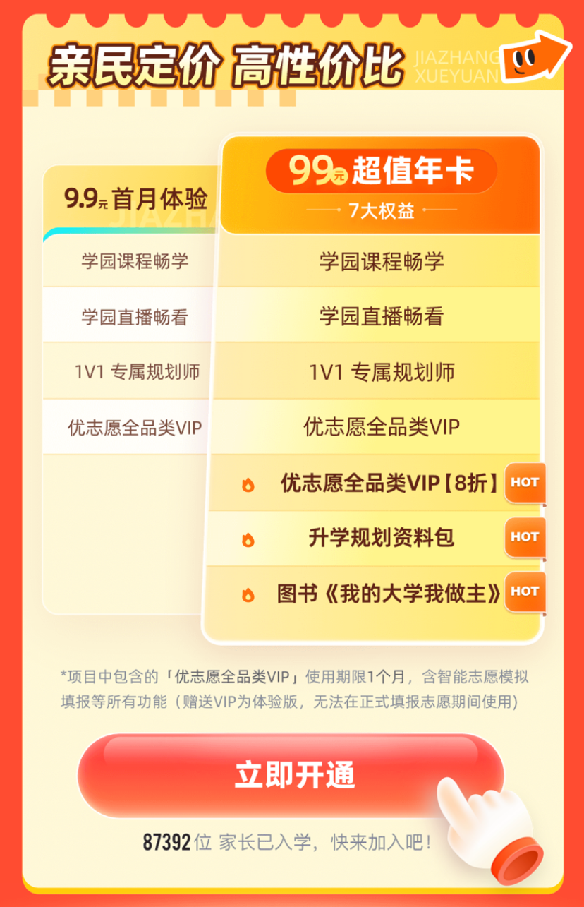 为更好地帮家长解决教育规划难题,我们特别推出年卡会员服务,现在加入就能尊享以下专属权益: