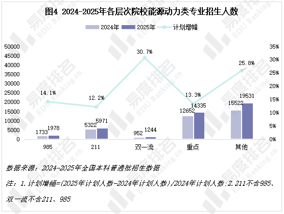 今年各层次院校能源动力类专业招生计划增幅均超10%。其他院校的计划增幅达25.8%,能源动力类专业在非重点院校中的扩招尤为明显。
