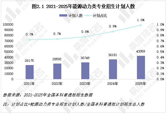 随着新能源产业的快速发展,传统能源产业也在进行着智能化、数字化的转型升级,其相关人才需求缺口不断扩大。能源动力类专业正在飞速扩招,2025年其普通本科计划招生超4.3万人,而2021年该数字仅为2.6万人,短短五年间,计划增幅超64%。