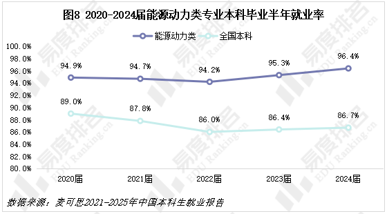 而能源动力类的就业率则稳中有升,2024届毕业生就业率高达96.4%,是所有专业类中就业率最高的。这从数据层面上说明了能源动力类的人才需求缺口巨大,并且该缺口还在逐年增加。