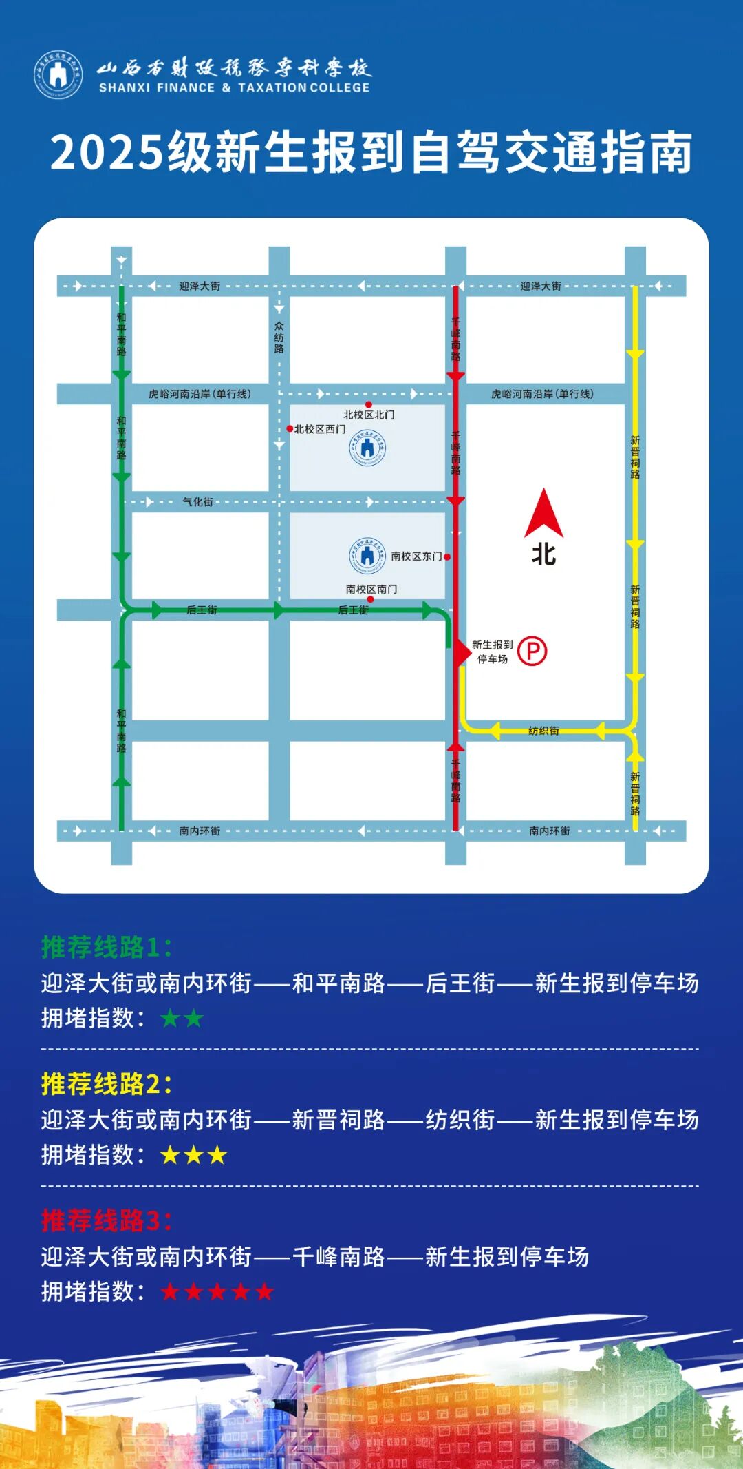 自驾方式来校导航至山西省财政税务专科学校南校区(山西省太原市万柏林区千峰南路25号)