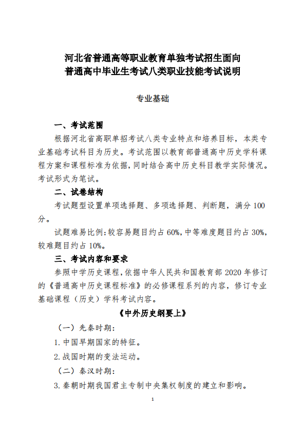 2026年河北省普通高等职业教育单独考试招生面向普通高中毕业生考试八类职业技能考试说明