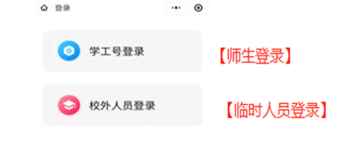 注:校内师生使用学工号+密码(密码为身份证号后6位数字)登录,校外人员使用手机号码+短信验证码。