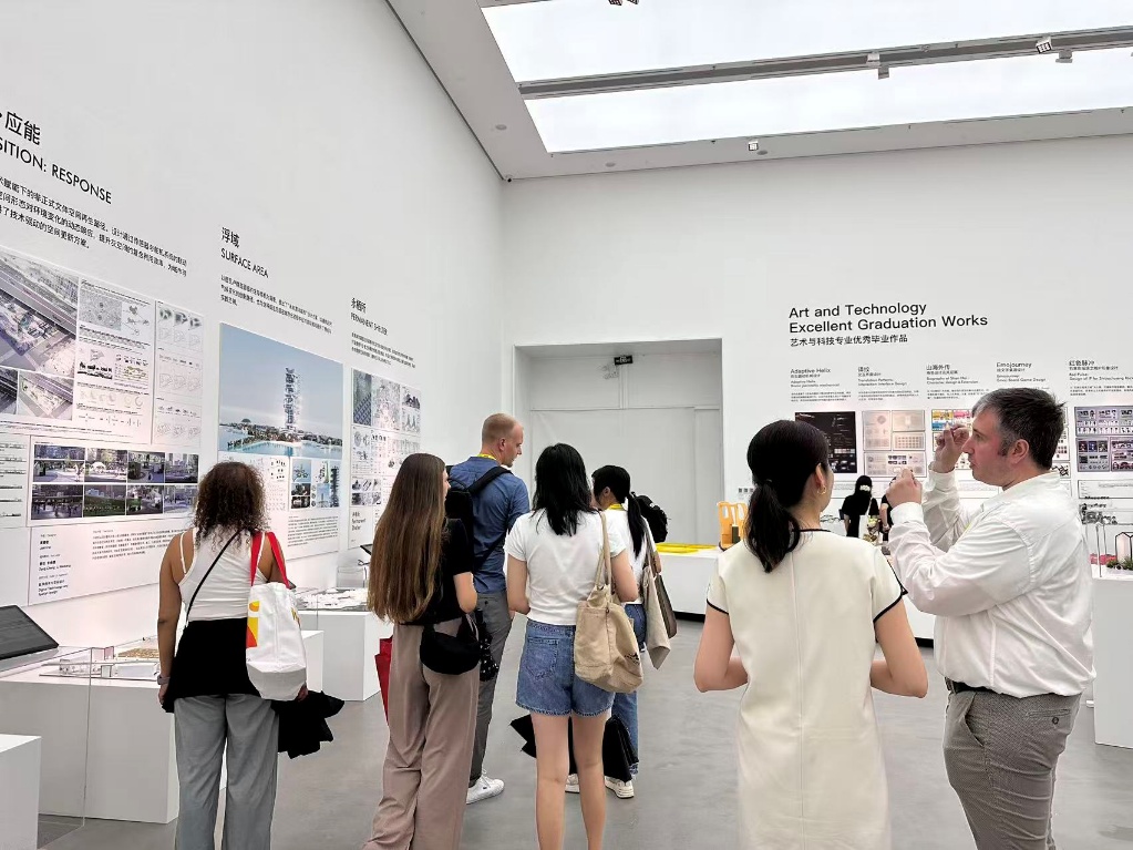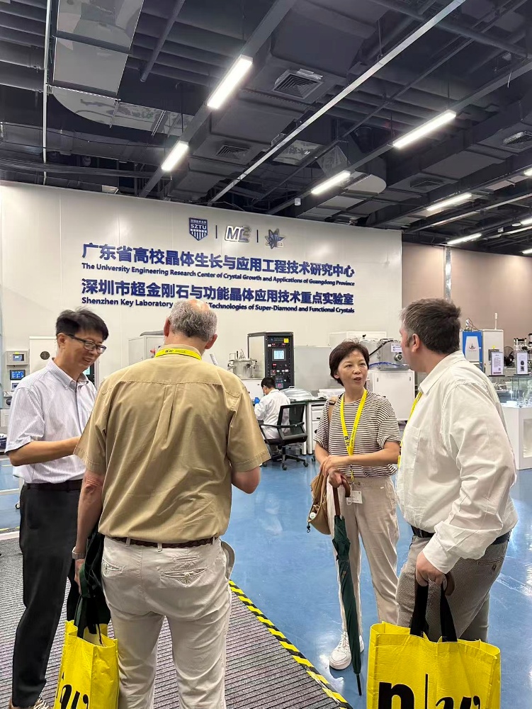 在深技大,代表团探访深技大教学科研平台。在深圳市超金刚石与功能晶体应用技术重点实验室,代表团了解金刚石薄膜应用。在未来手术室与放射影像技术实验室了解医疗技术创新,探寻未来医疗场景。此外,代表团还参观创新工作坊、创意设计学院展厅等,相关学院师生讲解办学特色与校园文化。