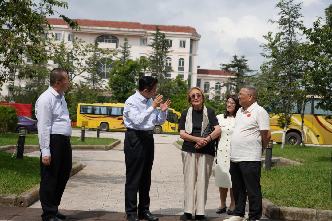2025年9月10日,教育部院校设置专家委员会委员、教育部部省合建高校党建工作联络员、西南林业大学党委原书记张昌山教授和著名导演唐书璇女士一行莅临滇池学院海埂校区参观考察。滇池学院校长马杰、党委书记陈炳灿,校长助理陈雯和有关部门负责人陪同考察。