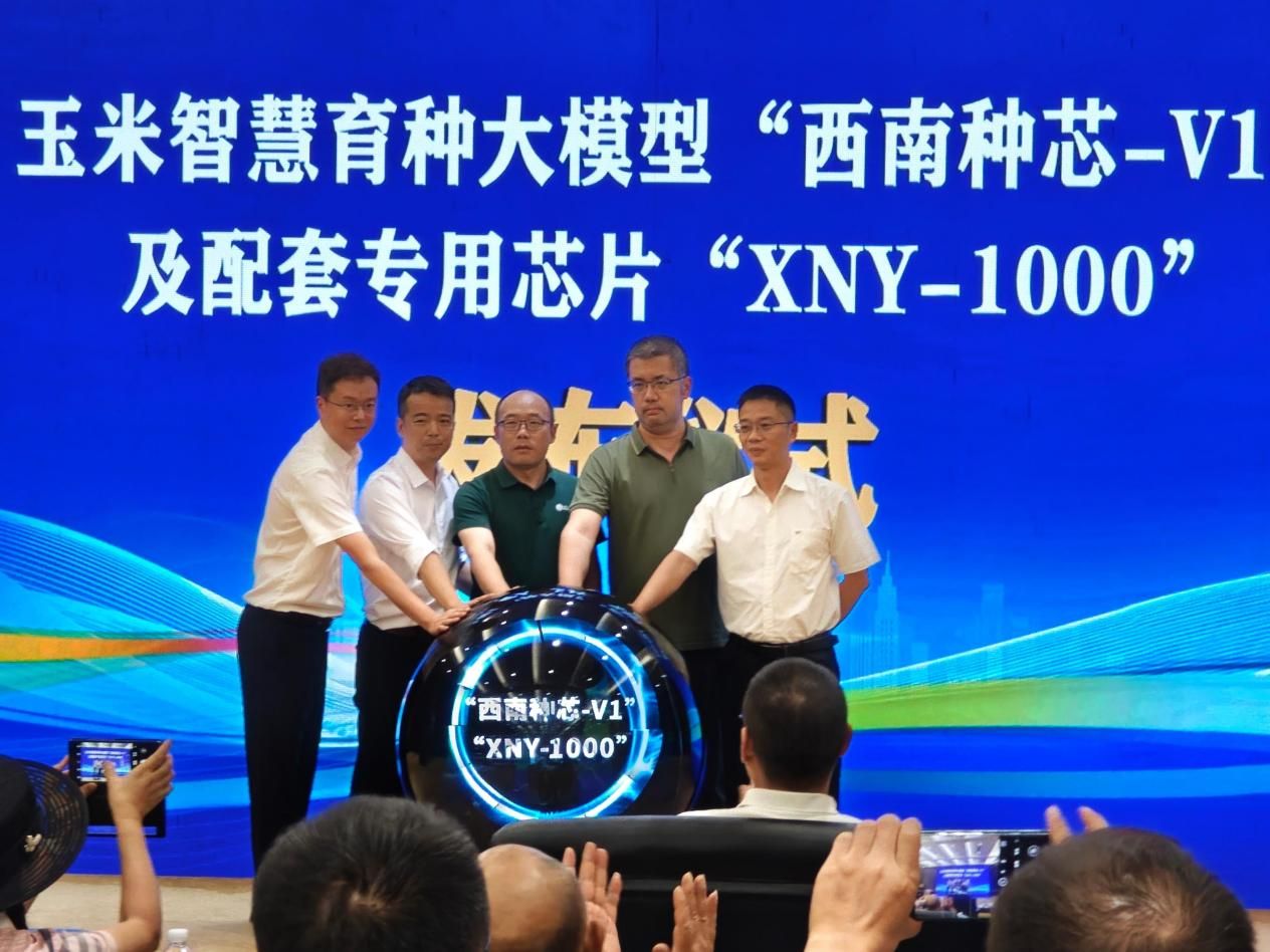 在“十四五”国家重点研发计划“农业生物种质资源挖掘与创新利用”重点专项的支持下,为实现育种技术从“经验选配”迈向“智慧育种”的迭代创新,显著提升品种选育的效率与质量,9月8日我校与石家庄博瑞迪生物科技有限公司(以下简称博瑞迪)在云南省红河州弥勒市共同发布了国内首款玉米智慧育种大模型“西南种芯-V1”及配套专用芯片“XNY-1000”,将大幅提升育种精准性与效率。