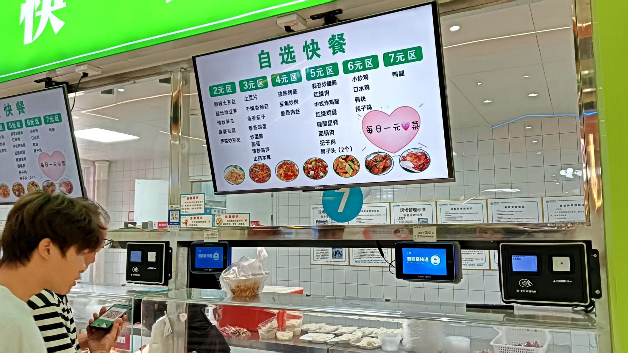 学生食堂宽敞明亮的餐厅开着凉爽的空调,售饭窗口十几种菜肴明码标价,有1元菜、免费汤,消费满15元还可以抽奖......11点刚过就吸引了不少新生及家长来学生食堂体验就餐。