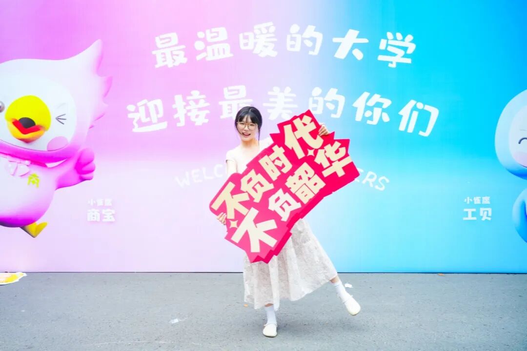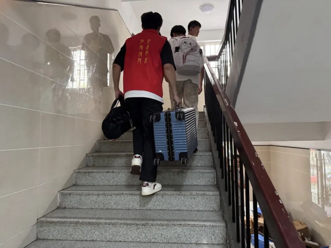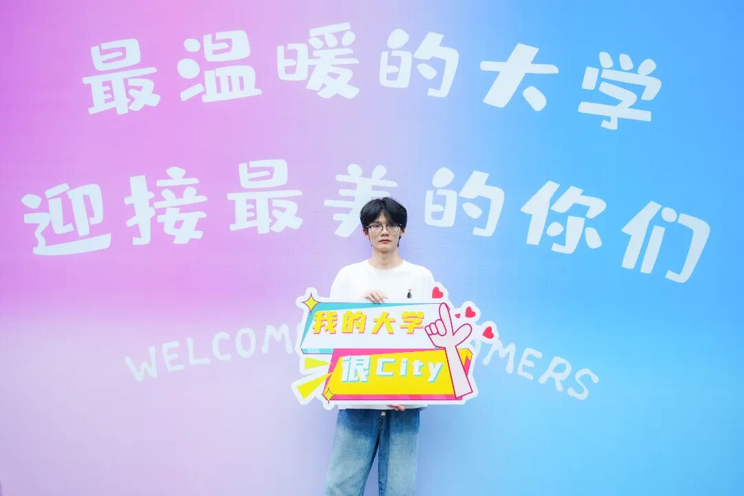 现场还迎来了一位身高2米的新生,在人群中格外显眼。这位新生名叫柳兆轩,是应用技术学院财富管理专业的新生。