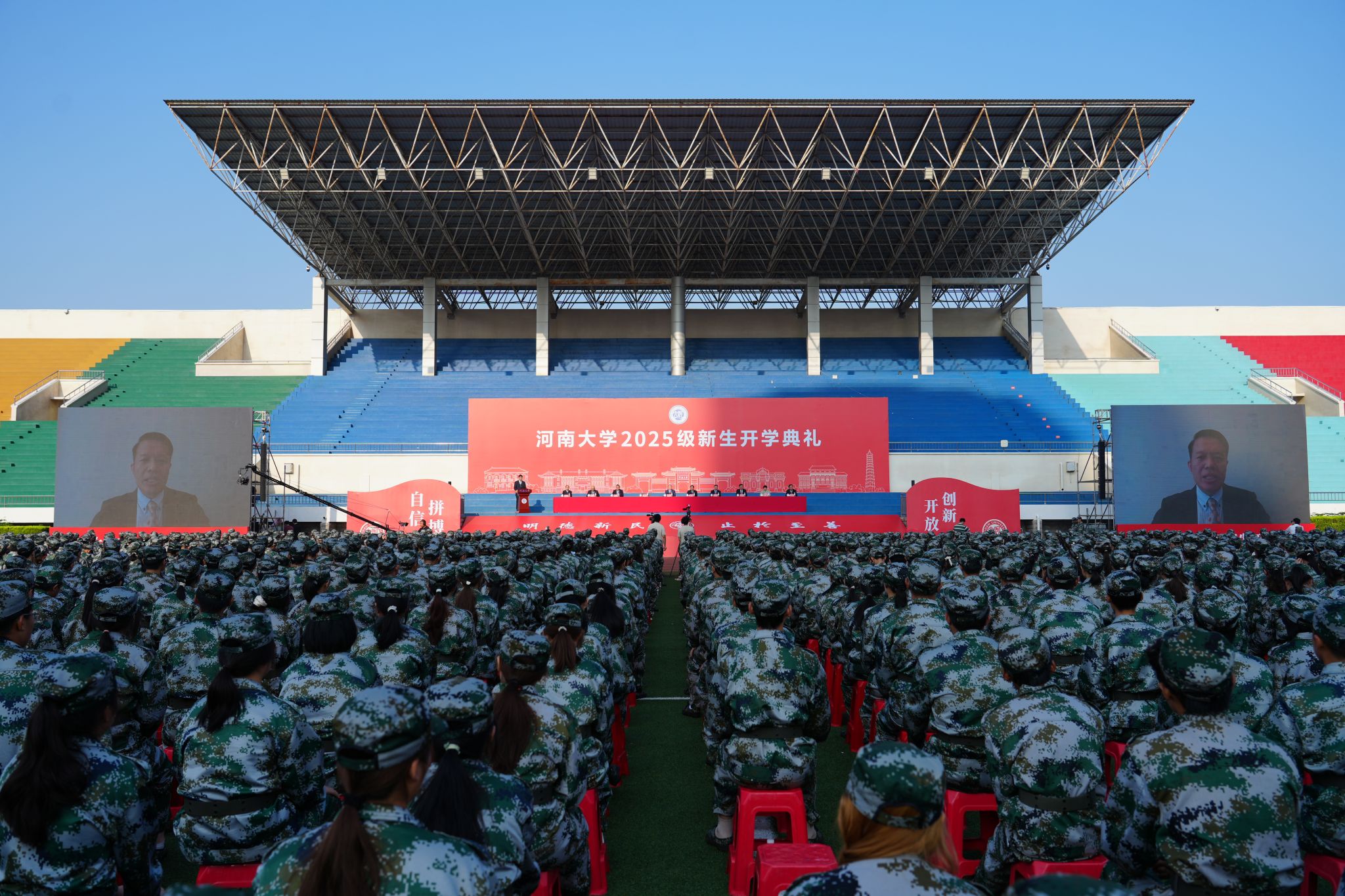 校长张锁江院士以“知行合一 笃新致远”为题致辞,以学长、师长和校长的身份,代表学校热烈欢迎2025级新同学加入河南大学大家庭。他深情说道,“河大人”这三个字,从此刻起将成为伴随同学们一生最鲜明的印记,也将是大家逐梦路上最坚实的支撑。