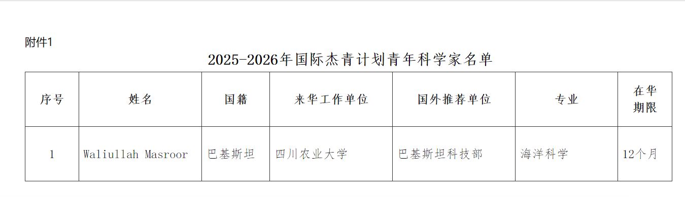 近日,科技部中国科学技术中心公布了2025年度第二批发展中国家杰出青年科学家来华工作计划(简称“国际杰青计划”)立项结果,由动物科技学院曹全全副教授申报的合作项目成功获批。巴基斯坦拉斯贝拉大学助理教授Waliullah Masroor成功入选,由巴基斯坦高等教育与科研部推荐,将于近期抵达动物科技学院开展相关科研工作。