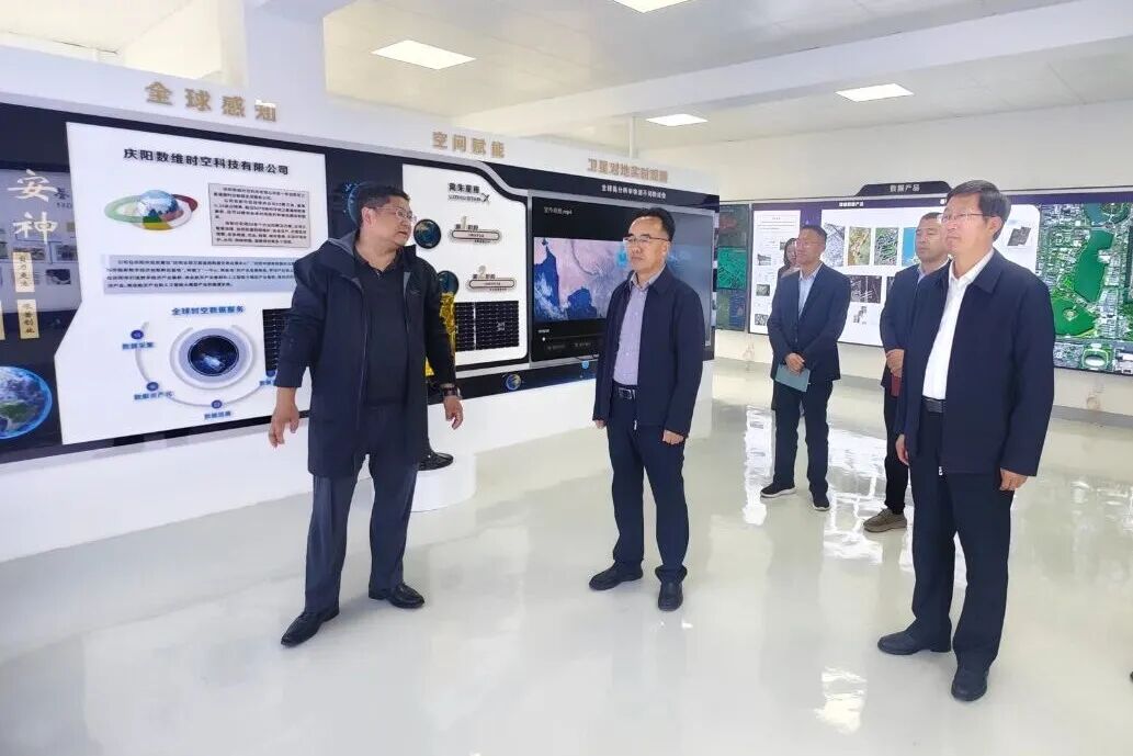 张建军一行先后参观了企业成果展厅、全球卫星遥感数据交易结算中心指挥大厅。陕西宝塔星空航天科技有限公司总经理王敬华详细介绍了企业核心技术成果、主要业务场景及庆阳全球卫星遥感数据交易结算中心、国家数据标注基地、国家数字经济创新孵化基地项目建设规划等。他表示将积极与学院对接建立校企合作关系,充分发挥企业在数字经济领域的生态优势,助力全市和学院数字经济人才培养与产业生态构建。