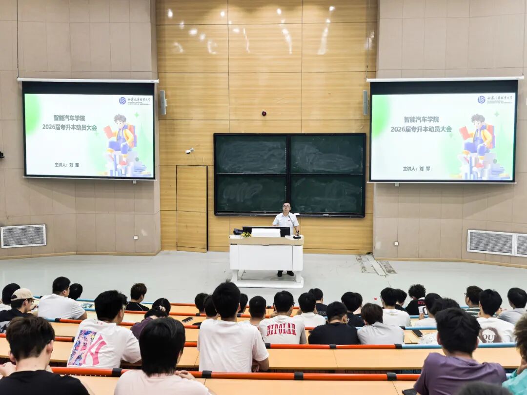 为积极响应国家构建现代职业教育体系的战略部署,更好服务学生学历提升需求,2025年9月10日,西安汽车职业大学智能汽车学院在临潼校区尊贤教室组织召开2026届专科毕业生专升本动员大会。智能汽车学院院长王放、副院长王丽妲、院长助理孟群,学校招生办公室市场科科长刘军、学院辅导员及2026届全体专科毕业生共同参会。大会由王丽妲主持。