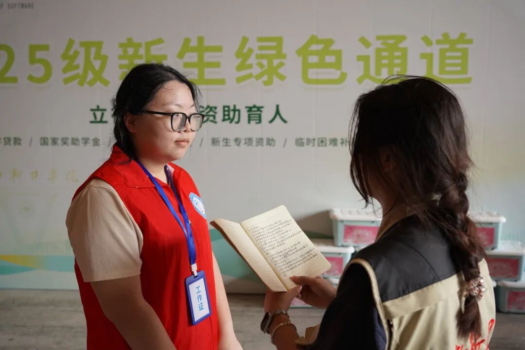 “宿舍现代设计感的设备一下点亮了视线!”来自软件与人工智能学院的曾浩鑫谈及报到初体验时,难掩兴奋。身兼新生与志愿者双重身份的他,因初高中志愿服务经历,对“奉献”有着深刻理解:“这不仅是社会责任,更是双向温暖的传递。”