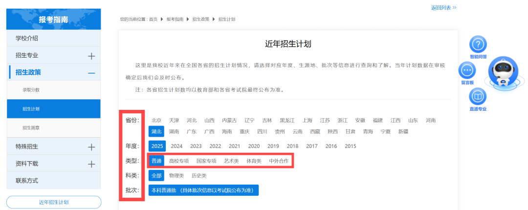请各位考生及家长注意,我校招生计划需选择对应类型具体查看,如普通本科、高校专项、国家专项、艺术类、体育类、中外合作办学等。