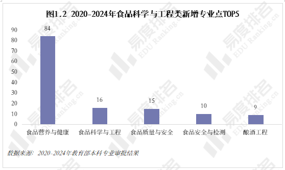 一、专业点年增数量保持稳定,食品营养与健康断层第一