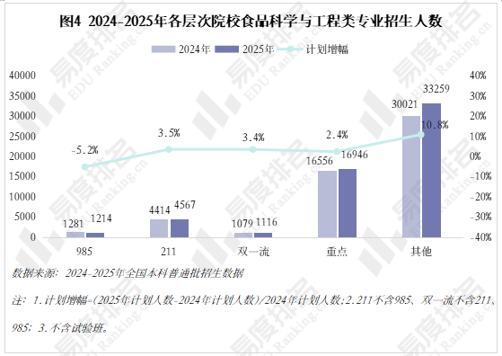 985院校招生人数出现五年来首降,2025年较2024年招生规模缩减5.2%,211、双一流及重点层次院校招生计划小幅上升,其他院校增幅最大,达10%以上。