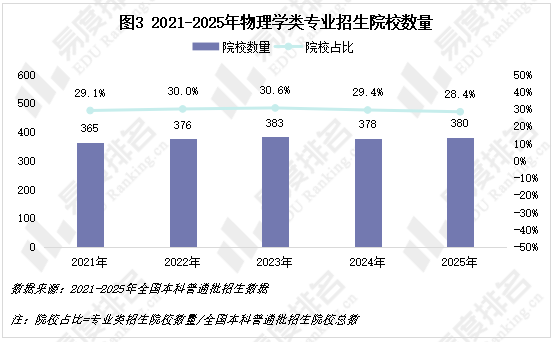 三、招收物理学类专业的院校占比与人数占比同步下降