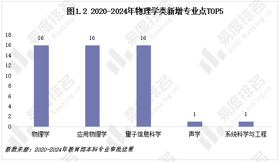 物理学、应用物理学、量子信息科学三个专业的新增数量五年间并列第一,合计占期间新增总量的绝对大头。