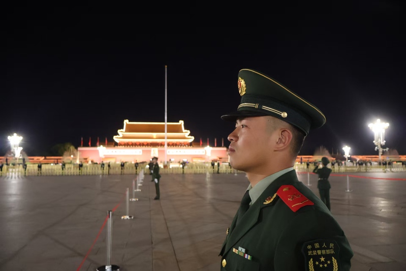 2025年纪念中国人民抗日战争暨世界反法西斯战争胜利80周年大会核心区观礼台警戒