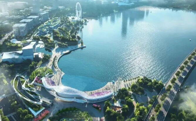 总导演沈晨在接受采访时表示,舞美设计初衷源于“一张白纸上的精彩演绎”,这个屹立于碧波之上的“白纸”舞台,以城市天际线为背景,将演绎出一部海天交融的城市交响。