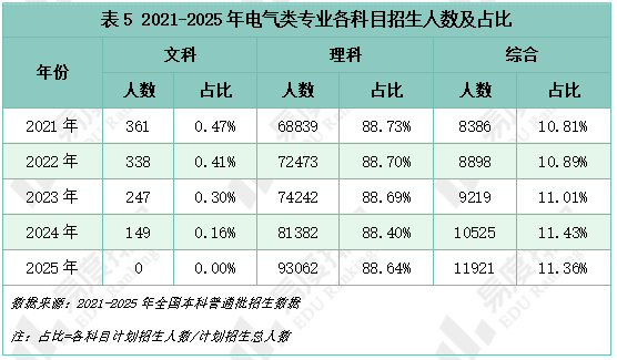电气类专业高度依赖理科基础,理科占比始终稳定在88%以上,是绝对的招生主体。选科要求正变得越来越严格和纯粹,2025年文科生在此领域的入口完全关闭。