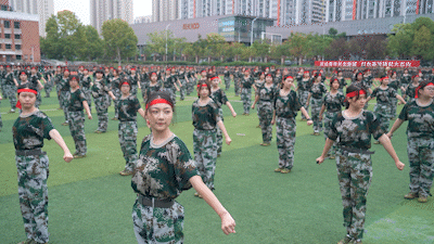 学生军事训练特色科目展示现场高潮迭起,女子匕首操、男子军体拳、女子破锋八刀和模拟战术表演轮番上演。“杀!杀!杀!”女子方阵率先登场,她们头缠红巾,手握匕首,眼神坚毅,弓步前刺,快且精准;转身斜劈,凌厉生风,一招一式,刚毅果敢。紧接着,男子军体拳霸气开打,弓步冲拳,迅猛刚劲;穿喉弹踢,直击要害;马步横打,势大力沉,尽显铁血风采。转瞬间,女子破锋八刀轰然“杀出”,“铿锵玫瑰”们步态坚实,出刀迅猛、收刀利落,刀影闪烁间飒爽豪迈,引得场外喝彩声不断。