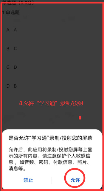 8.请在手机设置里允许学习通使用摄像头,以免被误判遮挡摄像头,被判违规。