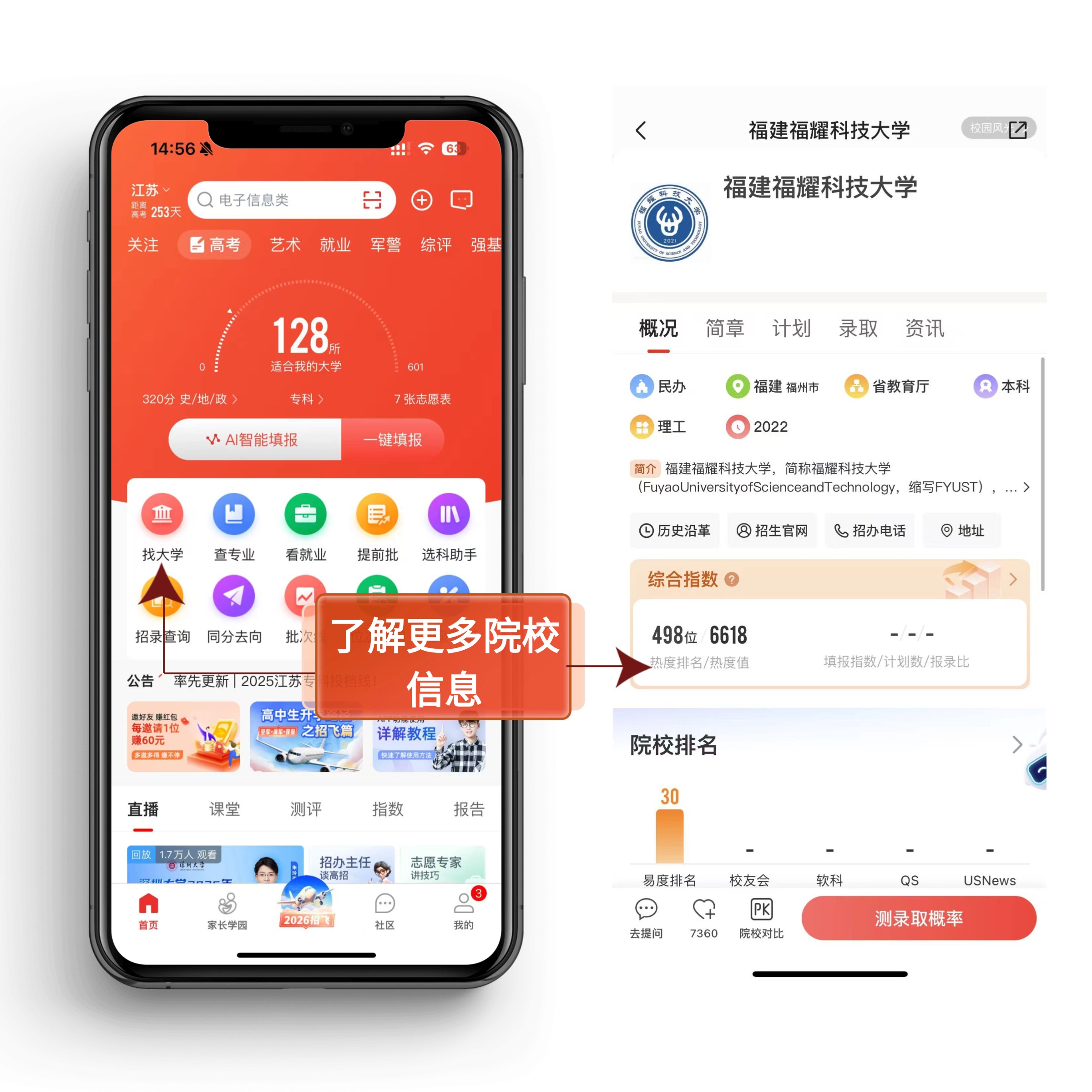 想要了解更多院校信息,可点击优志愿【找大学】功能,搜索意向院校名称,即可了解更多信息。