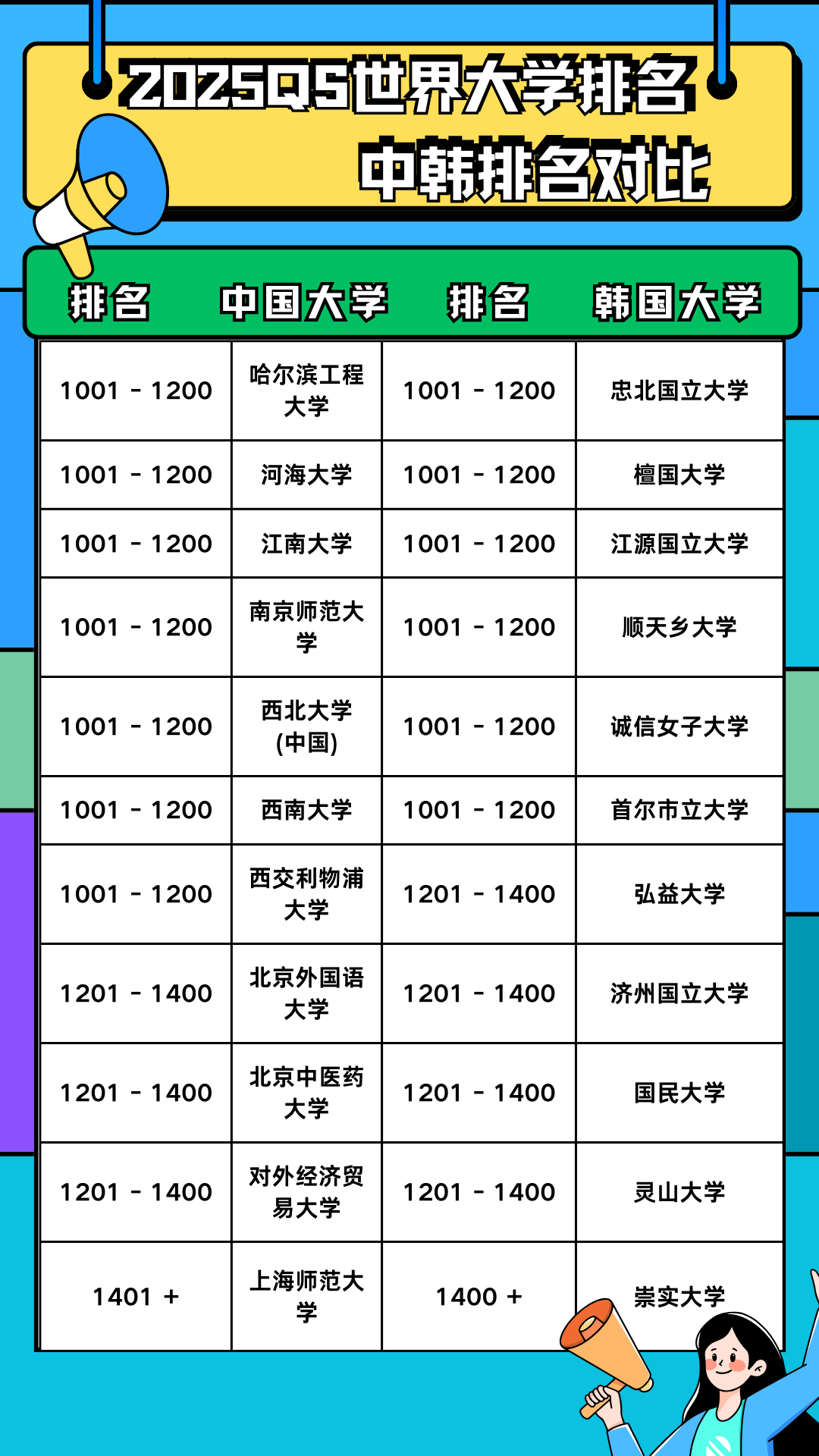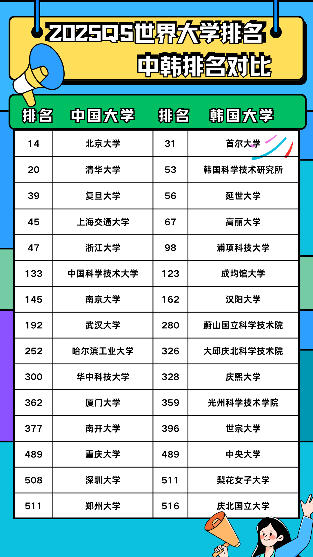 ③目标院校:江原大学、世宗大学、仁荷大学、灵山大学、延世大学、庆云大学、信韩大学、尚志大学等。