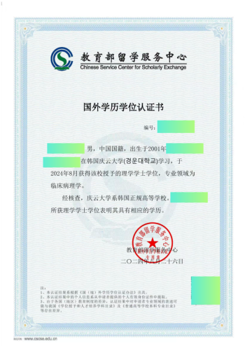 学生在韩国大学修满学分,达到毕业要求后,可获得由该校颁发的毕业证书及学位证书。证书经由中国教育部留学服务中心认证后,法律效力等同于国内高校毕业证+学位证,可用于考公落户、就业、升学等。