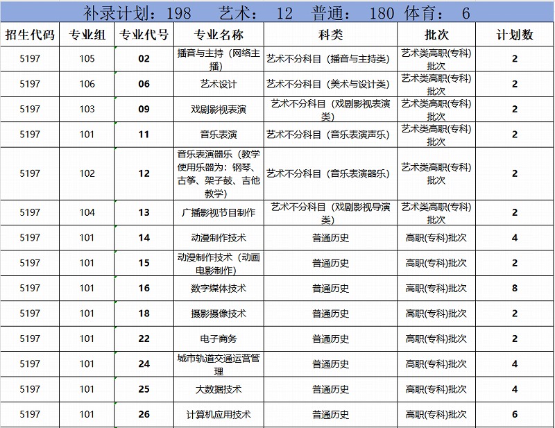 四、补录专业及计划