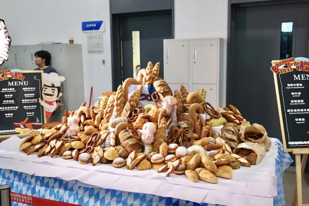 今年深技大“巴伐利亚文化之夜”准备了丰富的德国美食自助以及各式点心、饮品和水果,各类风味香肠、沙拉、碱水结和炖菜广受欢迎。