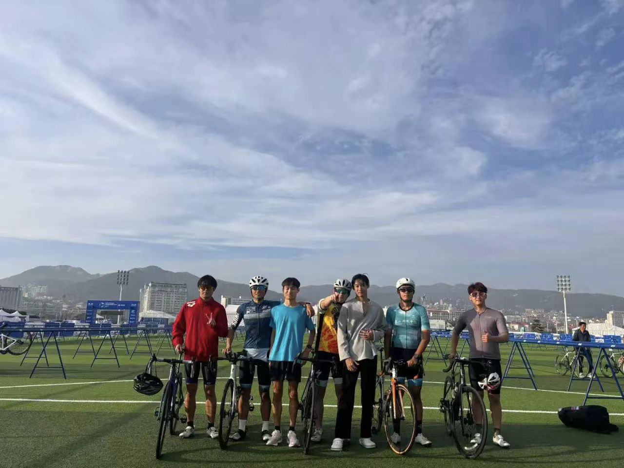 (泰山科技学院校铁人三项队赛前出征照)