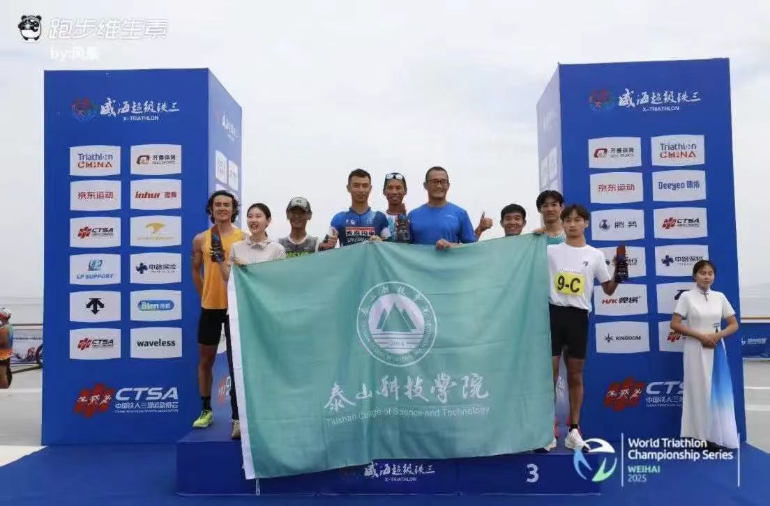 9月27日,由中国铁人三项运动协会、山东省体育局、威海市重大体育赛事组委会主办的2025中国威海超级铁人三项系列赛成功举办。泰山科技学院铁人三项队5名队员斩获半程男子团体组全国季军、超级铁三全程接力组全国季军,实现首次参赛即获优异成绩,向全国铁三舞台展示泰科的竞技体育育人实力。