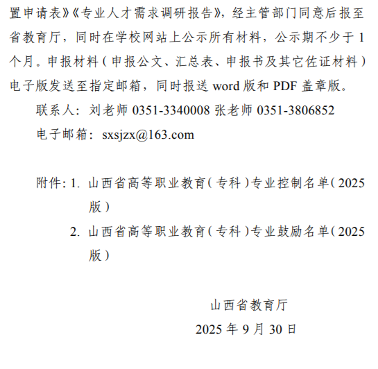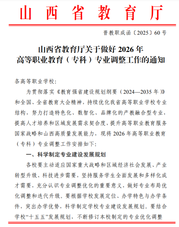 山西省教育厅关于做好2026年高等职业教育(专科)专业调整工作的通知