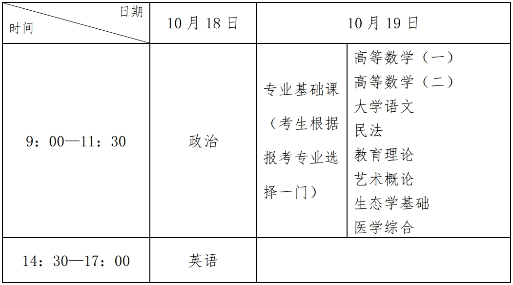 一、考试时间及科目(一)高中起点升本、专科考试时间表