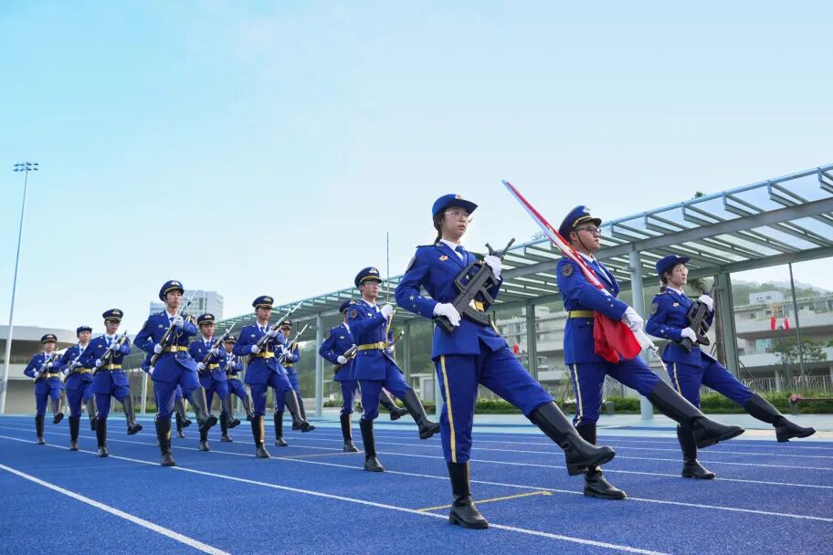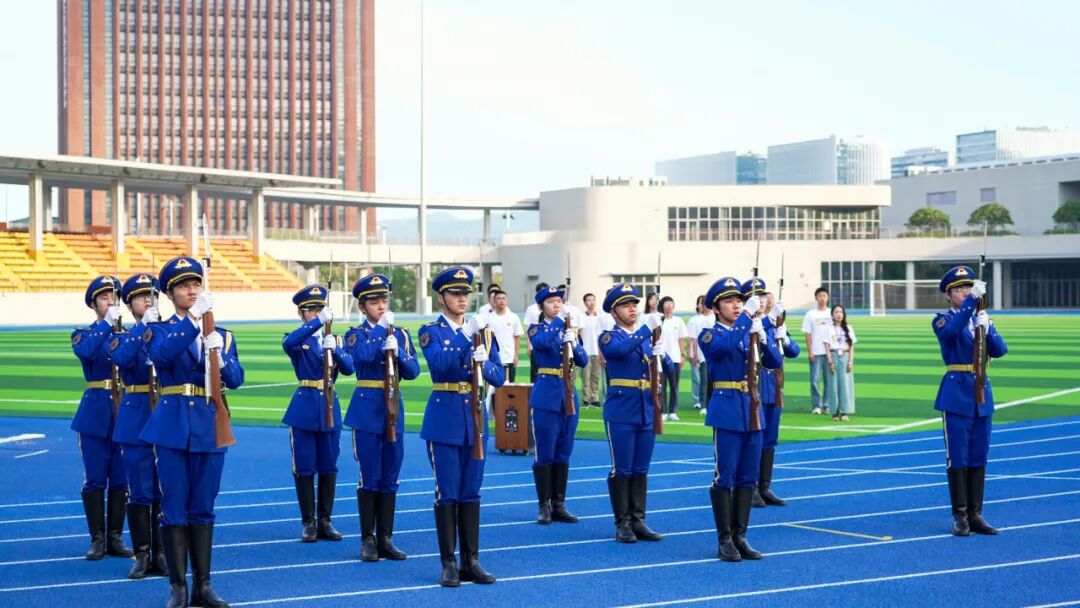 如今,深圳理工大学国旗护卫队已有18名队员,他们因“护旗”这一共同的使命凝聚在一起。“当我们身着礼宾服、指尖触碰国旗的那一刻,此前所有的汗水都会化作对这份荣誉的珍视,”国旗护卫队队员、2024级本科生黄志棚的话道出了大家的心声,“脚下是深圳理工的体育场,心中却装着家国天下的辽阔情怀。”在他们眼中,“护旗”早已超越任务本身,成为一种身份认同、一种刻在骨子里的精神追求。