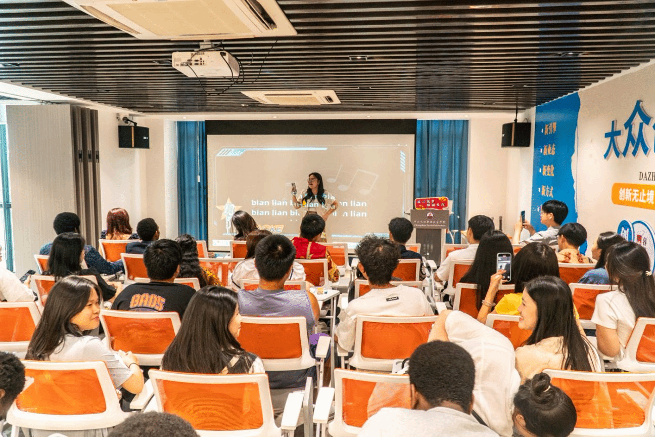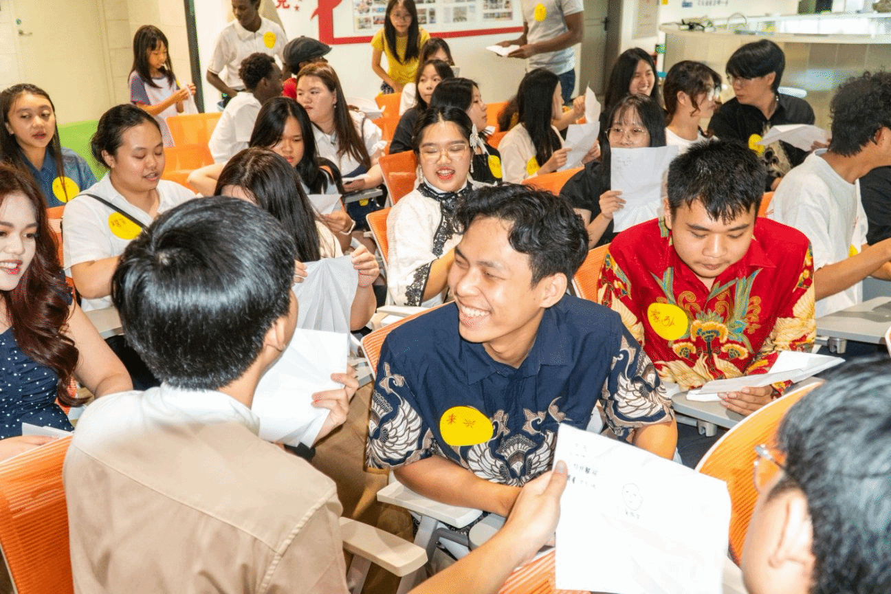 随后,活动正式进入互动环节。“猜灯谜”区红灯笼下挂满民俗、诗词等谜题,师生三五成群地讨论思索,答对时掌声与礼品相伴,喜悦氛围持续升温;“月饼品鉴”环节里,国际留学生在老师讲解下了解月饼地域文化,主动请教中秋传说,文化交流氛围轻松热烈。