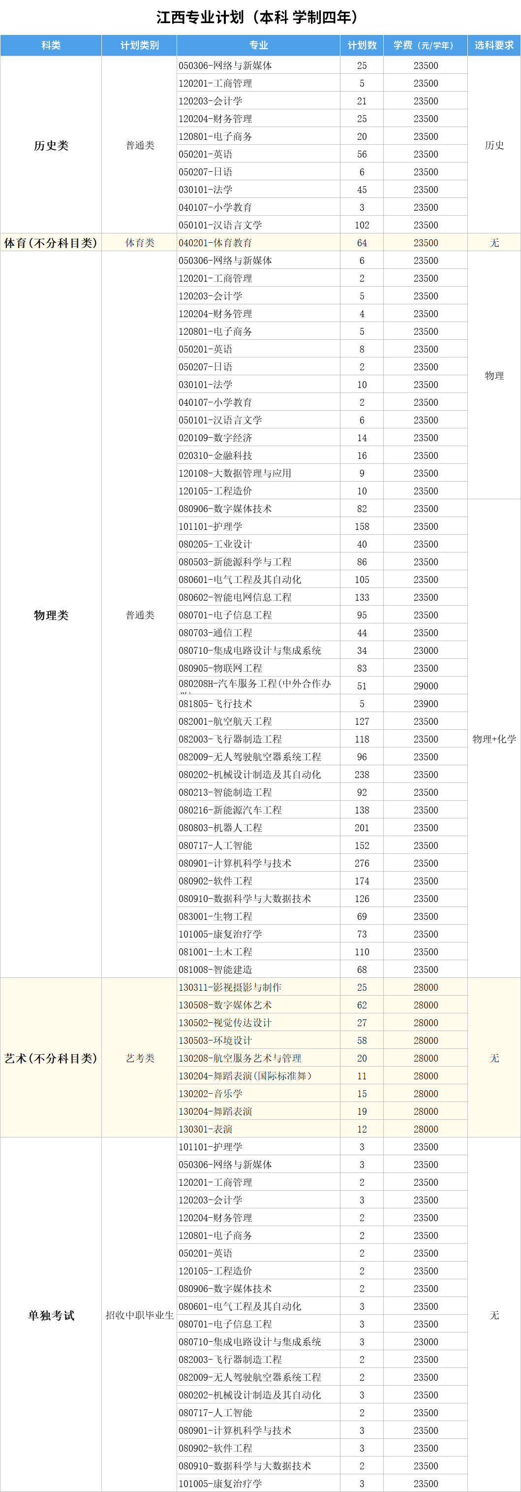 学科专业。学校以“科教兴赣、科技强省”为目标,主动对接和精准服务江西省“1269”行动计划,构建了以工为主,理、经、管、文、法、艺、教育等学科专业交叉融合、协调发展的学科专业体系,设有63个本科专业(在招专业53个)。现有江西省高校重点学科2个,国家级特色专业1个,省级特色专业建设点6个,省级一流专业建设点3个,省级专业综合改革项目3个,“卓越工程师人才培养计划”项目3个,省级人才培养模式创新实验区2个。现有全日制在校生3.3万人。