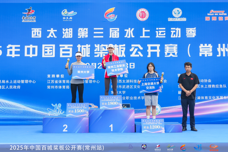 在近日落幕的2025年中国百城桨板公开赛上,我校水上运动产业学院建设喜获硕果,学生王苗苗同学表现卓越,荣获“高校女子组”冠军。