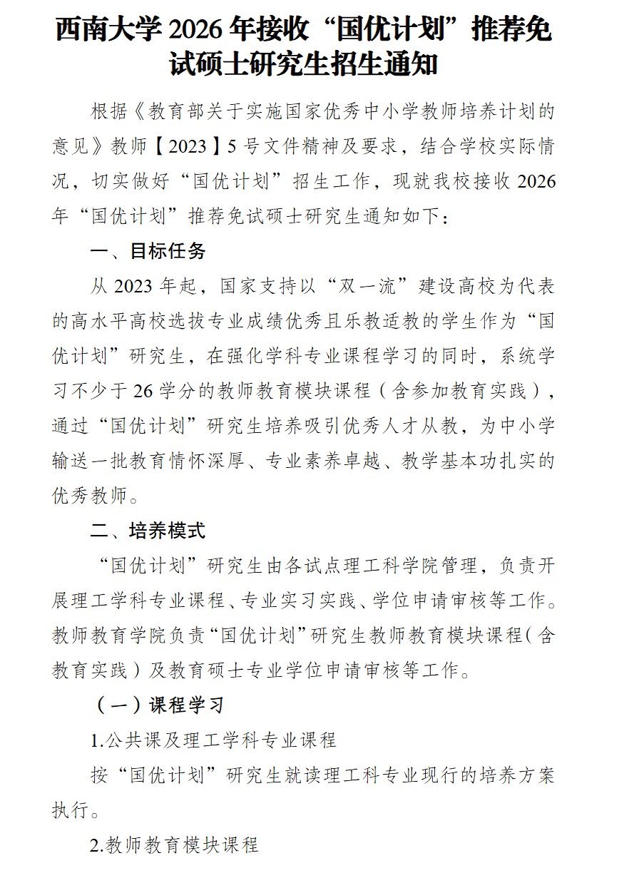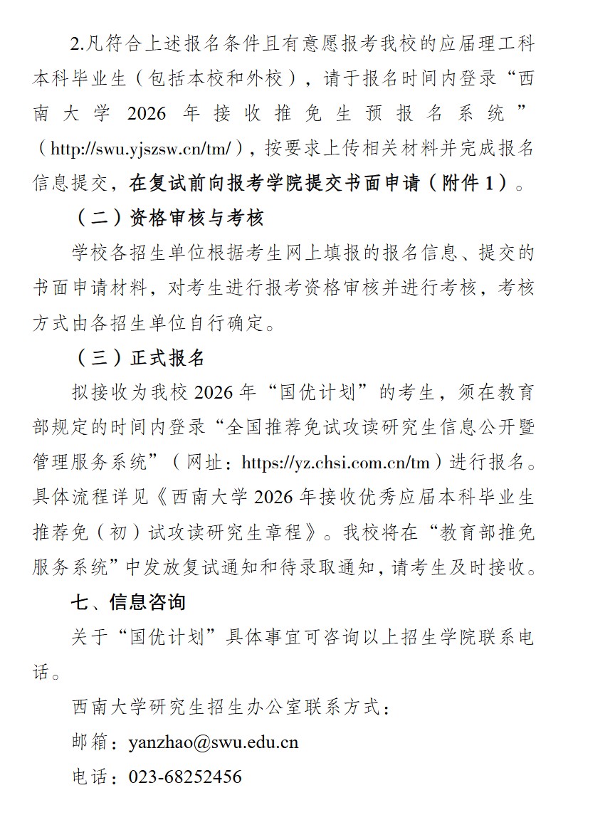 附件【附件1 西南大学2026年国优计划推免研究生申请表.docx】