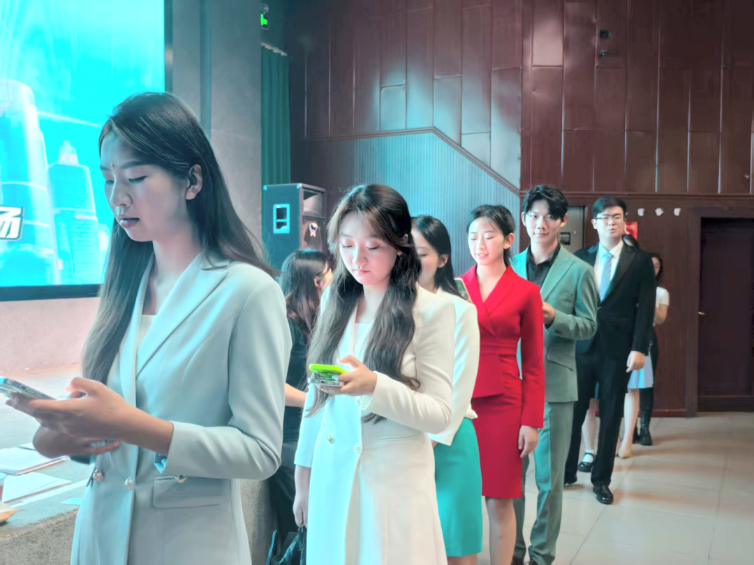 本次校园海选大赛内容分为两项,自我介绍与自备节目。清晨的校园早已洋溢着蓬勃的朝气,参赛选手们身着正装,手持稿件,提前到达候场区域进行现场签到、提交比赛资料等相关事务。选手们在候场区紧张准备,眼神中充满了期待。