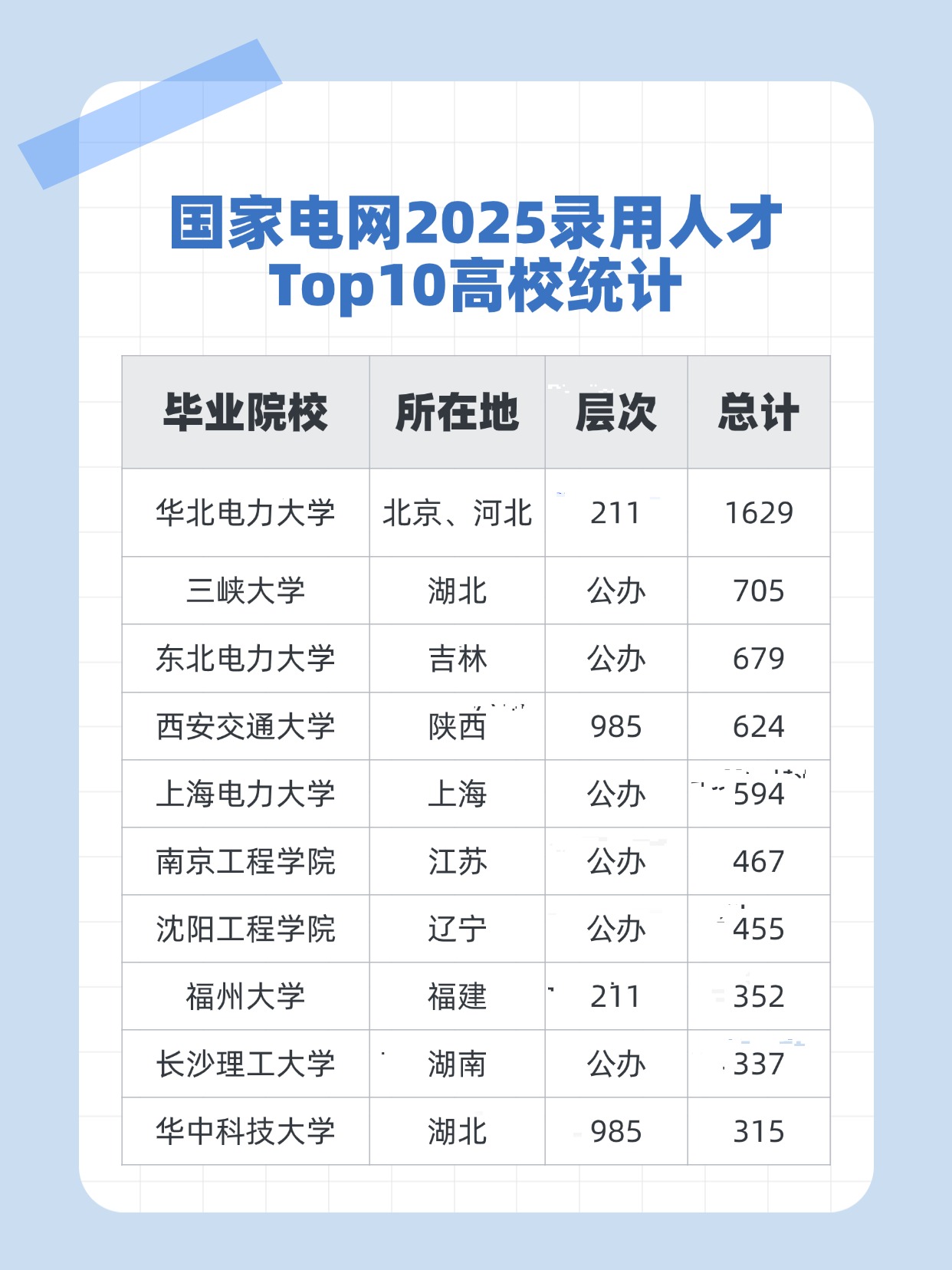 在2025年国家电网的招聘中,华北电力大学以两批次共1629人的录用人数强势领跑,彰显了其在该领域的顶尖实力。三峡大学、东北电力大学、西安交通大学及上海电力大学紧随其后,录用人数均突破500大关,共同跻身前五。值得注意的是,有6所“双非”院校表现尤为突出,其录用人数甚至超越了许多985名校。