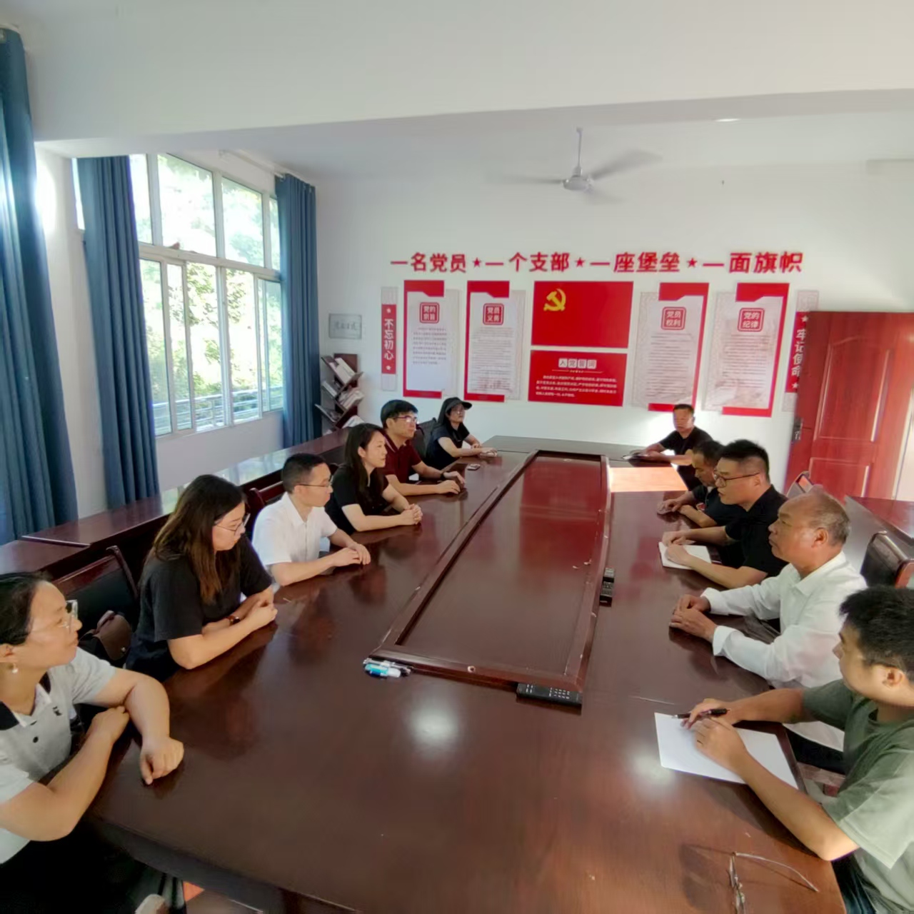 捐赠仪式后,招生就业处党支部与巫西村党支部开展支部共建交流活动。双方党支部分别介绍了基本情况,并就巫西村产业发展现状及面临困难进行深入探讨,共同寻求解决方案。